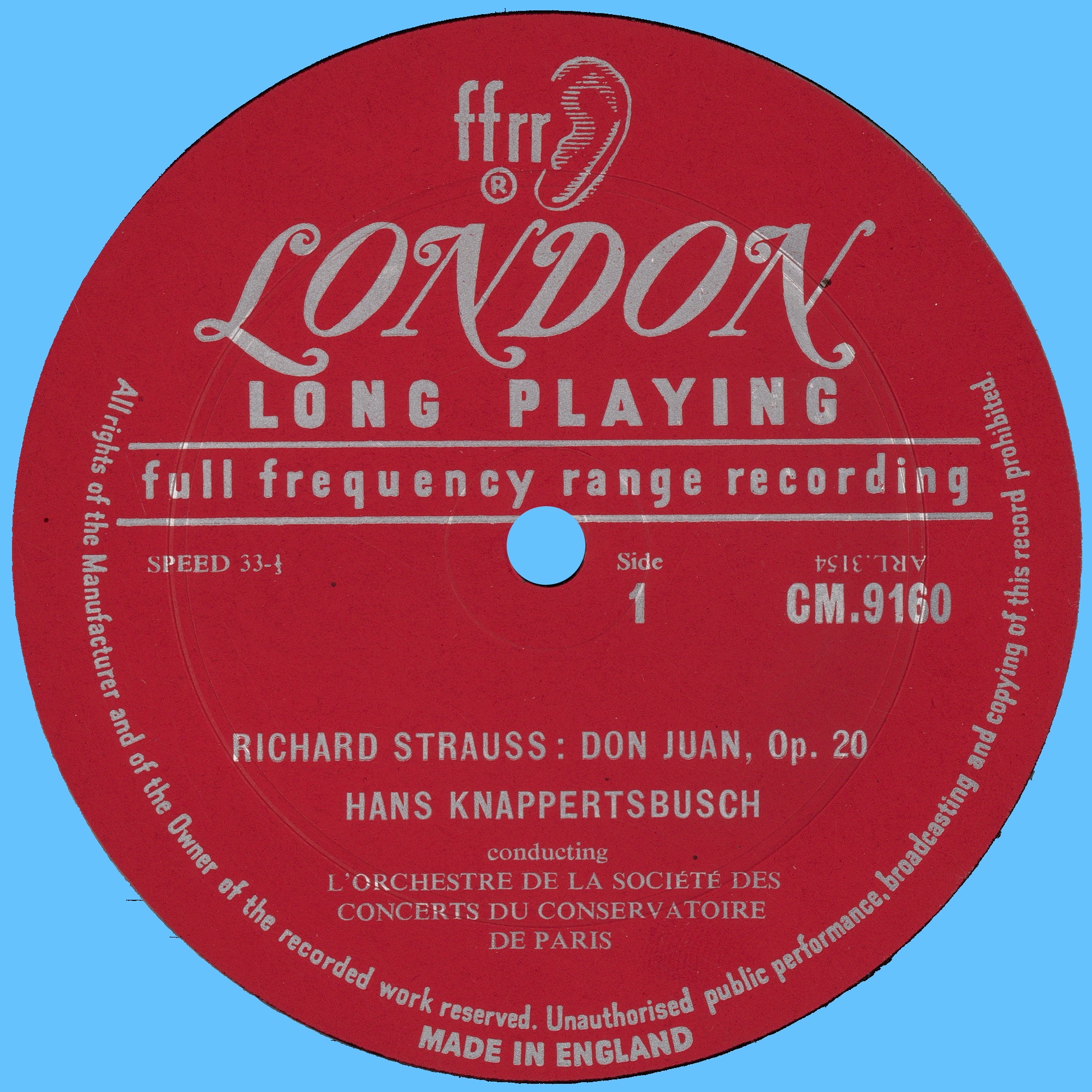 Disque Decca CM 9160, étiquette recto du disque (cliquer sur la photo pour une vue agrandie, cliquer EN DEHORS de la vue agrandie pour la fermer)