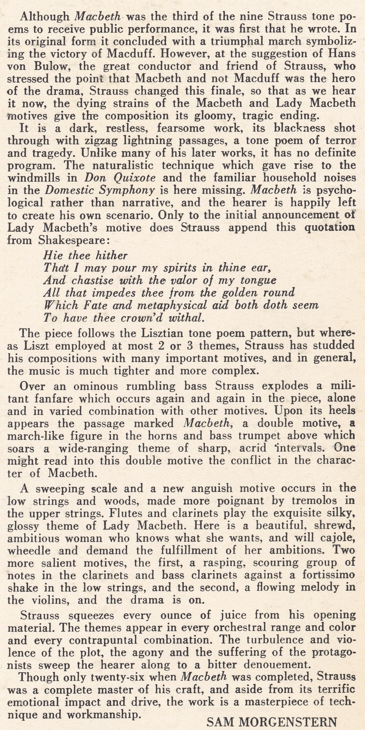 Richard Strauss, Macbeth, poème symphonique Op. 23, TrV 163, Orchestre Symphonique de Vienne, Henry Swoboda, 22 décembre 1949, «Konzerthaus Wien»