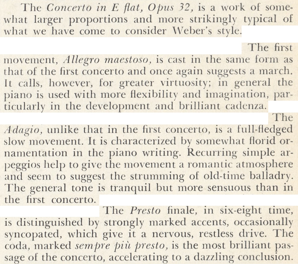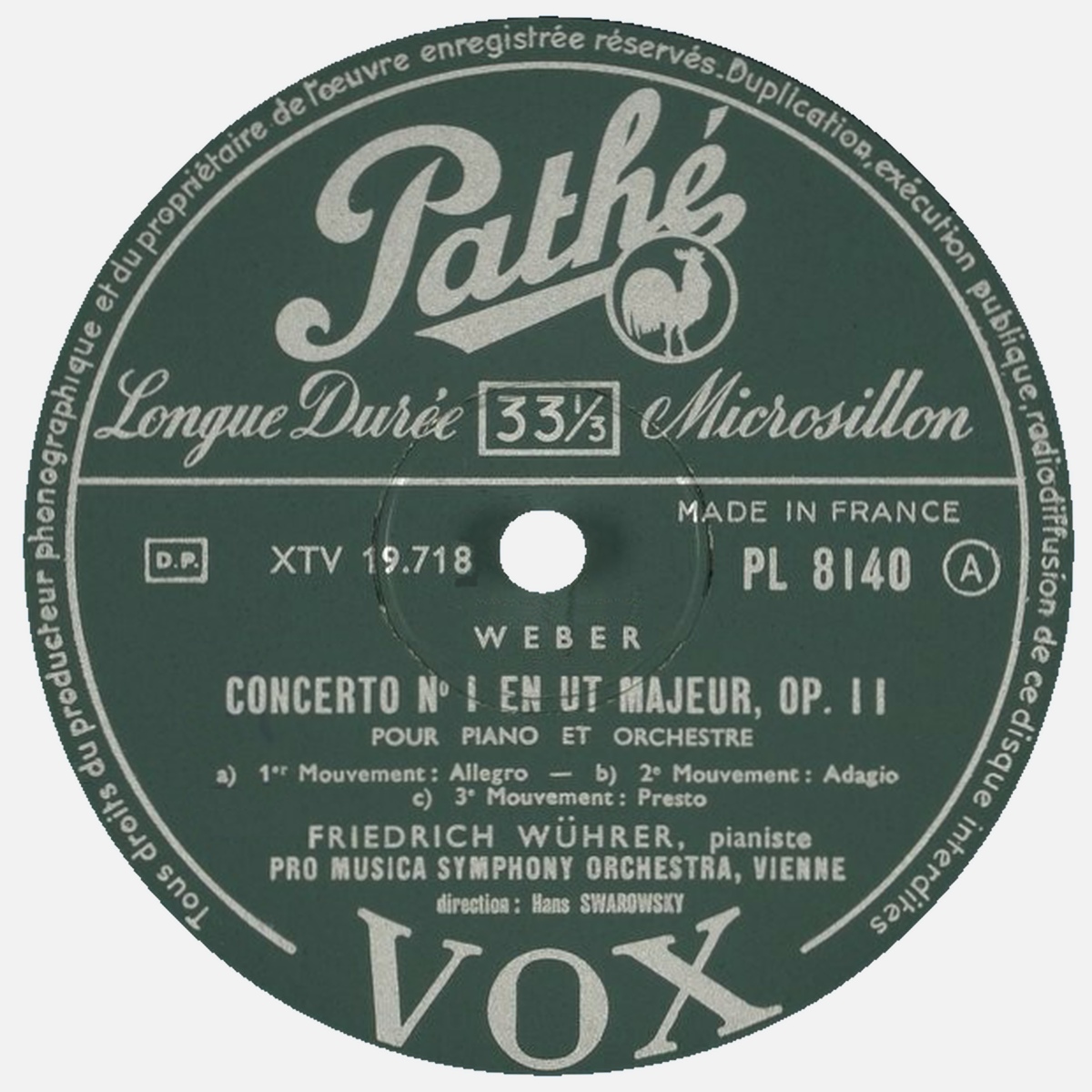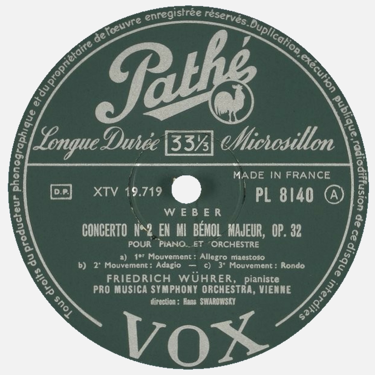 Carl Maria von Weber, Concerto pour piano et orchestre no 2 en mi bémol majeur, op. 32, J 155, Friedrich Wührer, Orchestre Pro Musica de Vienne, Hans Swarowsky