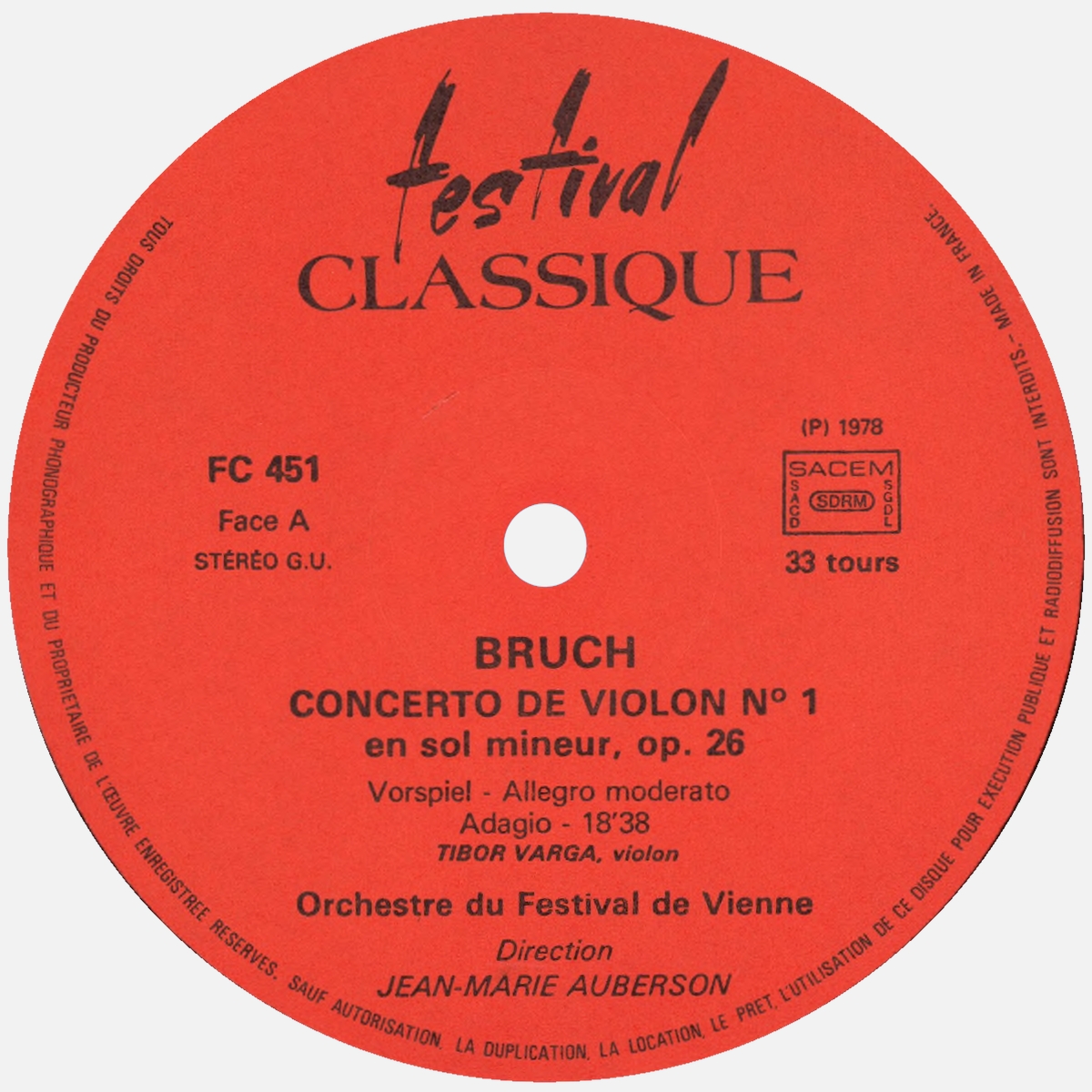 L'interprétation proposée sur cette page fut à l'origine enregistrée pour le label Concert Hall et publiée sur les disques SMS 2410 et 2587 - en SYNCHRO STEREO, une spécialité de Concert Hall exprimant que le disque pouvait être écouté aussi bien en mono qu'en stéréo. Il s'agissait toutefois souvent d'une stéréo factice, produite électroniquement. Dans le cas présent, j'ignore s'il s'agit d'une vraie stéréo. Cet enregistrement fut par la suite réédité sur ce disque Festival classique FC 451 - en STÉRÉO G.U., sans autres précisions.