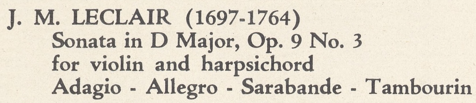 Jean-Marie Leclair, Sonate en ré majeur Op. 9 No 3 pour violon et clavecin, Robert Gendre, violon, Robert Veyron-Lacroix, clavecin, 26 mai 1959, studio Magellan, Paris