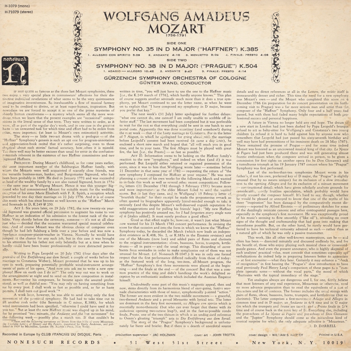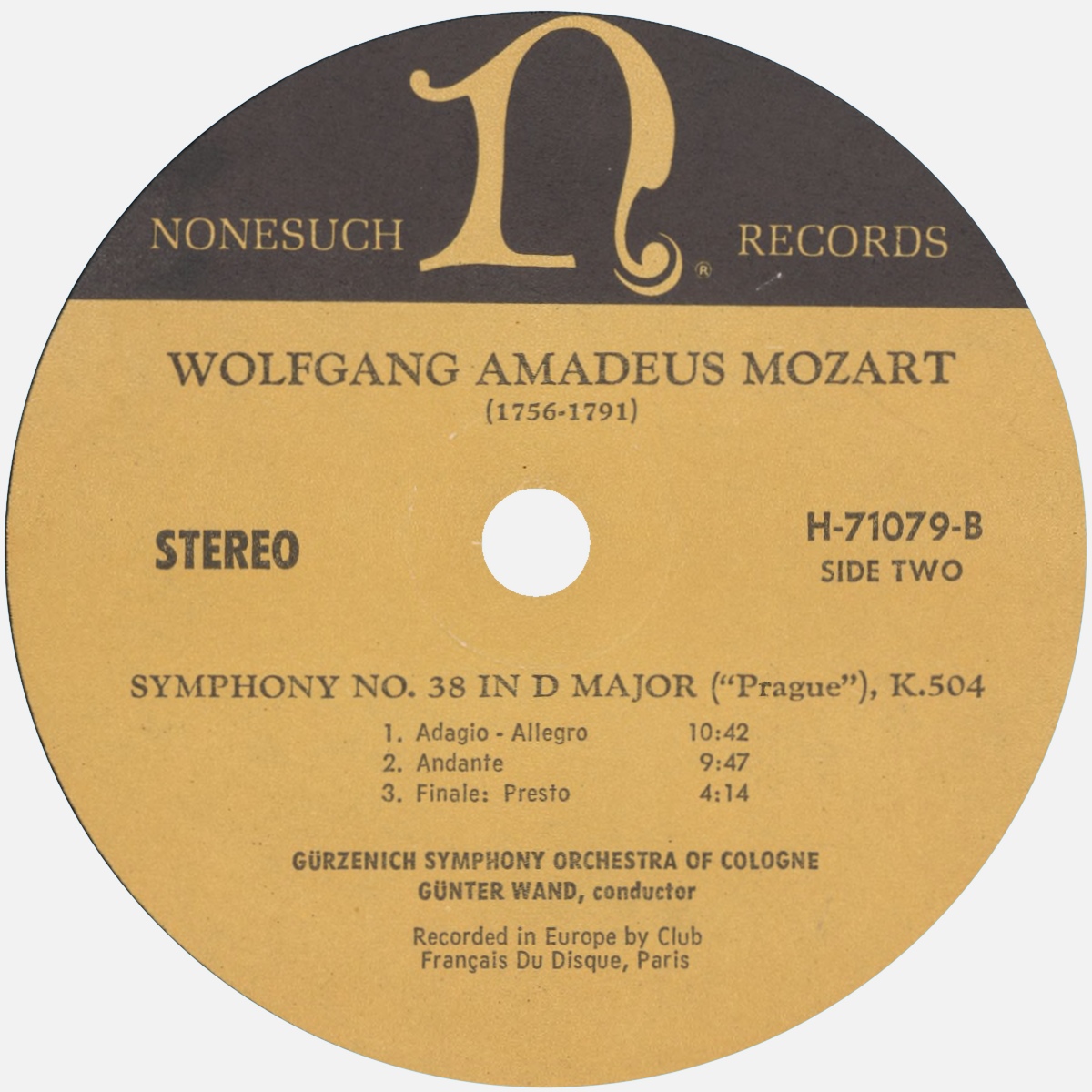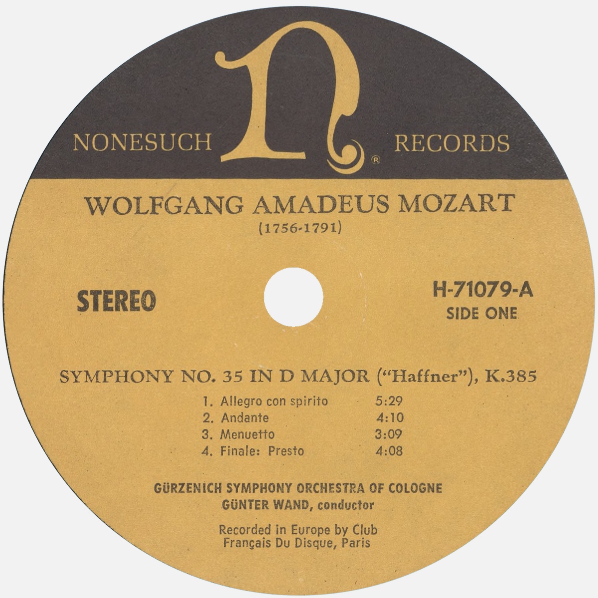 Wolfgang Amadeus Mozart, Symphonie No 35 en ré majeur, KV 385, Orchestre du Gürzenich de Cologne, Günther Wand, 1-2 décembre 1961, Leverkusen