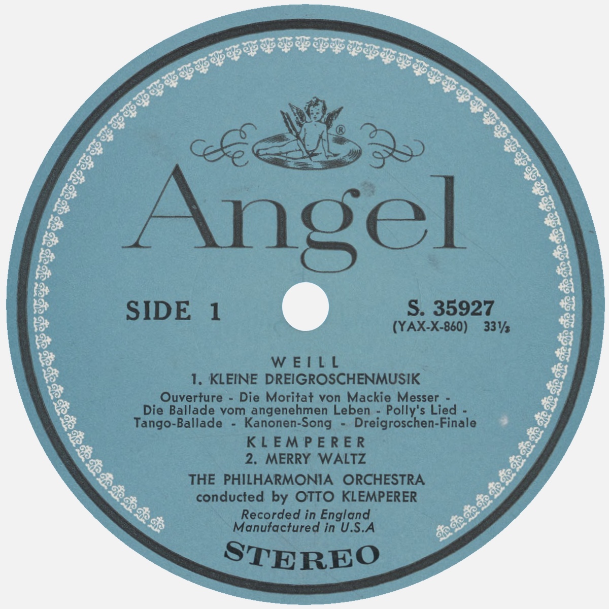 Kurt Weill, Kleine Dreigroschenmusik, Orchestre Philharmonia, Otto Klemperer, 31 octobre et 2 décembre 1961, Kingsway Hall, Londres