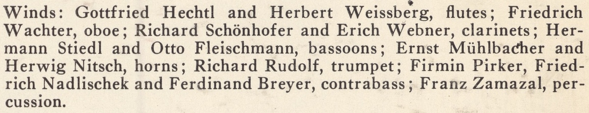 La composition de l'Ensemble d'instruments à vent, cordes et percussion accompagnant le soliste Robert GERLE, le tout étant placé sous la direction de Hermann SCHERCHEN: